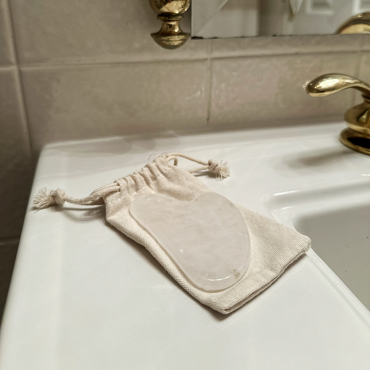 Pair with a facial oil or serum (always gua sha on lubricated skin), beginning at the neck and working upward with gentle, outward strokes.